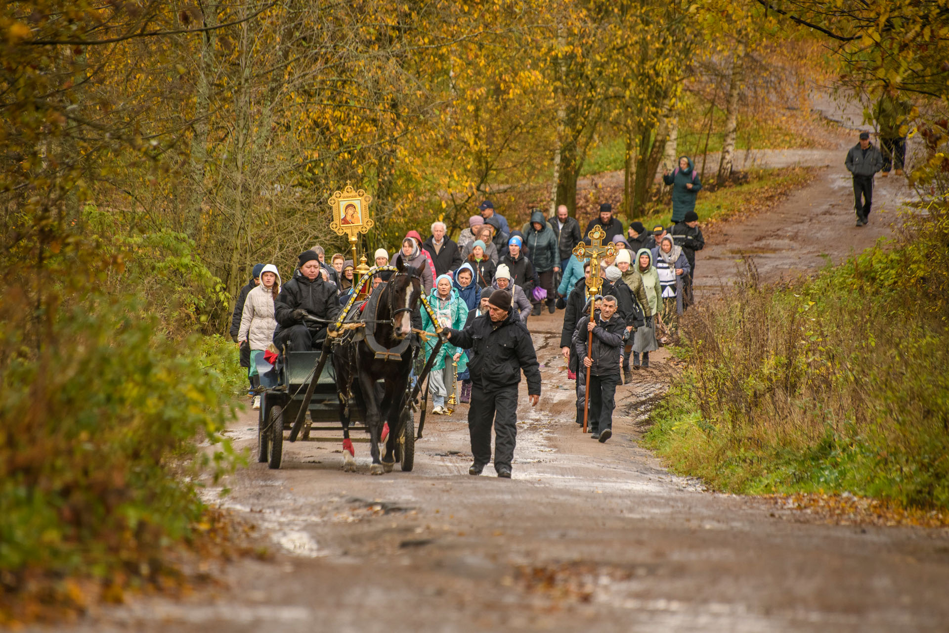 После окончании Литургии в храме Казанской иконы Божией Матери верующие отправились к поклонному кресту, установленному на месте затопленного Паисиевского мужского монастыря. В этом году к шествию присоединились сотрудники конного двора «Троицкое» на тройке лошадей, что придало событию особую торжественность.